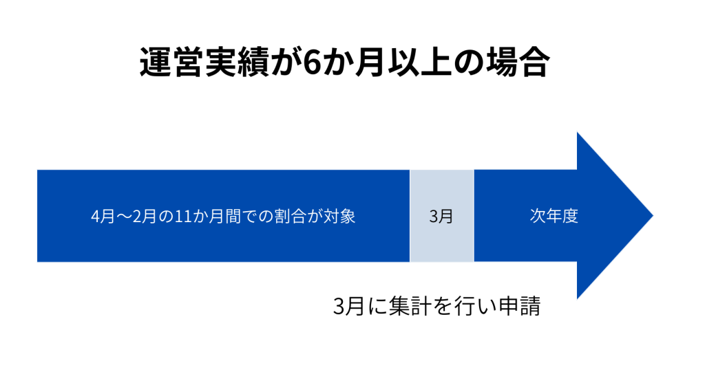 ただし、新規開設や事業の再開等で運営実績が6ヵ月に満たない場合は、前3ヵ月の実績を対象とし、算定要件を満たしていれば、該当の区分のサービス提供体制強化加算を算定することができます。つまり事業を開始して4か月目以降からサービス提供体制強化加算の届け出が可能となります。