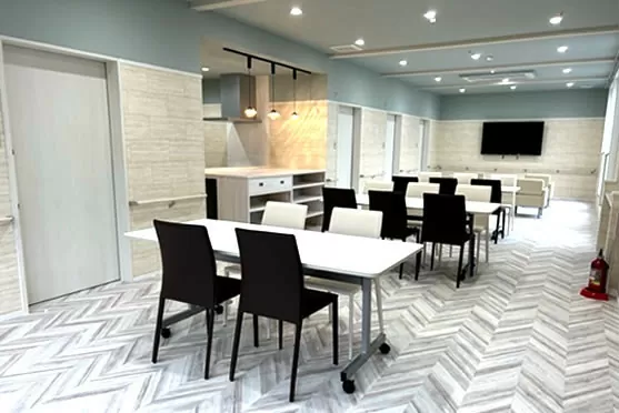 ライフプロジェクト様は整骨院を経営母体とし、訪問介護や通所介護、小規模多機能型居宅介護、有料老人ホームなど幅広いサービスを提供されています。令和5年2月にオープンした新しい建物は、広々とした開放的なつくりで、利用者の皆さまにゆっくりとくつろいでいただける空間となっています。また、経営母体が整骨院ということもあり、機能訓練のサポート体制も魅力のひとつです。