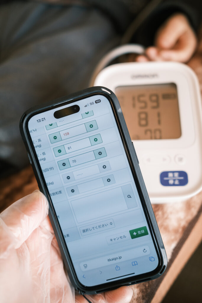 事業所内ではMacBookを使用して入力を行い、訪問時にはiPhoneを持参して、その場でバイタル情報やサービス内容を記録しています。訪問後にまとめて入力するのではなく、訪問先からすぐに入力できるため、記録漏れや記憶違いを防げていると感じています。